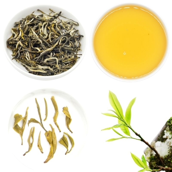 – Búp trà dài, hình lá trúc, đốm trắng.