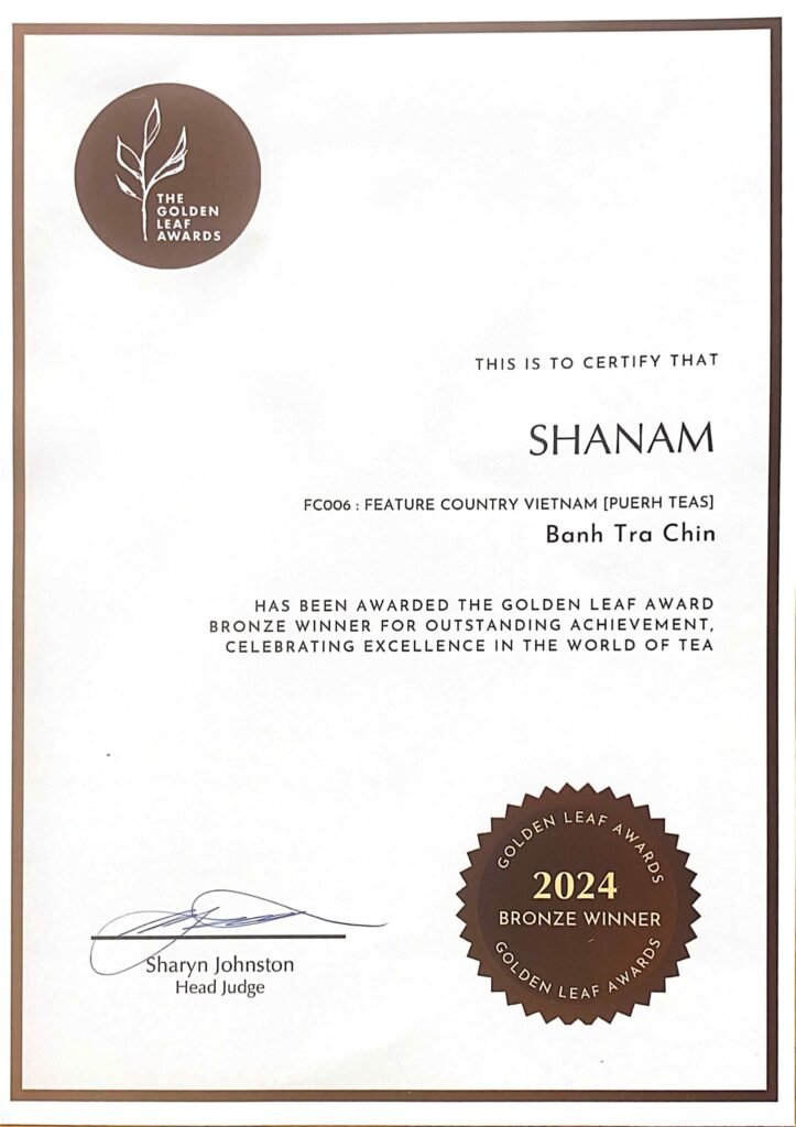 Niềm vui nhân đôi khi Trà Chín Shanam cũng xuất sắc giành Giải Đồng, tôn vinh chất lượng trà của thời gian và những dược tính được chuyển hóa trong từng lá trà lên men.